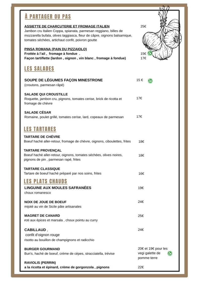 découvrez notre carte gourmande aux saveur de Provence et d'Italie